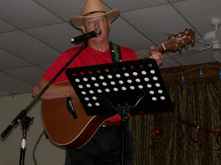 Last night was a exciting night. The park had a talent show and the called it "Doing what comes naturally". And of course, Larry participated! In fact he was in four different acts. One with the choir, in which they did two numbers and Larry played the guitar for both. Second, a friend of ours, Max and Larry did an old Everly Brothers song "Bird Dog". They wore T-shirts with EX- on Larry's shirt and LAX on Max's shirts and introduced themselves and the Crappy Brothers, because they don't give a crap! Third, Larry played and sang the "Auctioneer's Song". And the fourth and last of his acts was the Quacker. A men's quartet sang the Blue Daube with quakes as the chorus. To me, this by far the funnest thing Larry did, because I knew he hated it. He was not happy about it at all, but he agreeded to do a song with them before he really knew what it was about. I thought it was hilarious because I could see on Larry's face he was not a happy camper! I was very proud of him for everything he did. I am a lucky woman!!